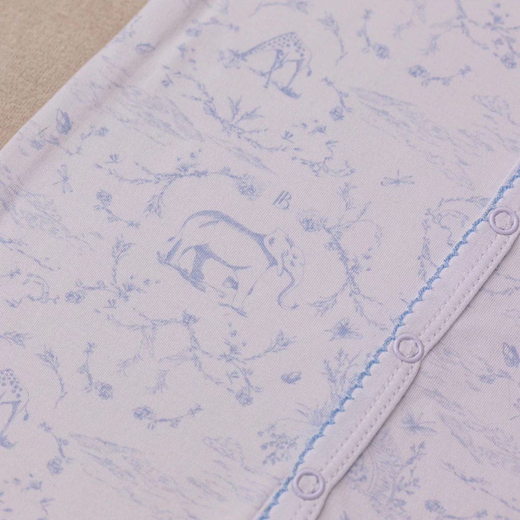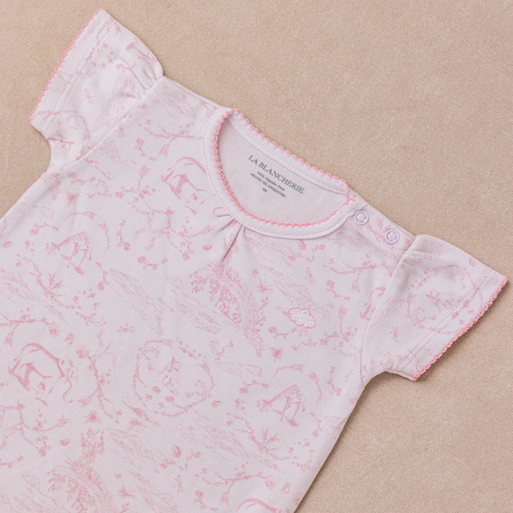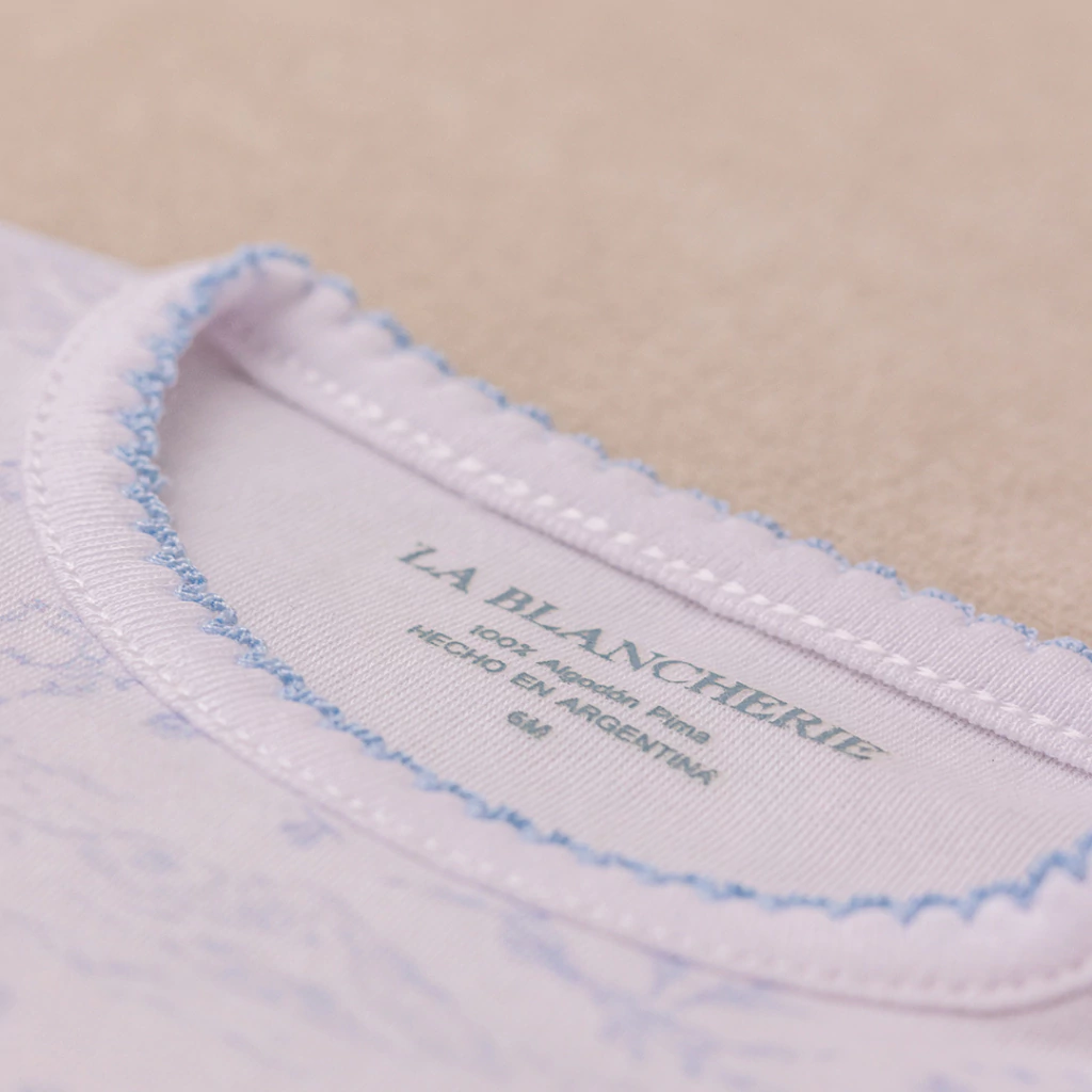 Body mangas cortas, de interlock pima estampado. Cuello redondo y cartera con broches en hombros. Logo bordado en corazón. Apertura de entrepiernas con broches aro. Es un tejido dermatológicamente testeado, que atenúa y ayuda a prevenir los riesgos de alergia. Mayor suavidad y durabilidad, hipoalargénico. Pensado y hecho para la piel del recién nacido, con materiales confortables y suaves.