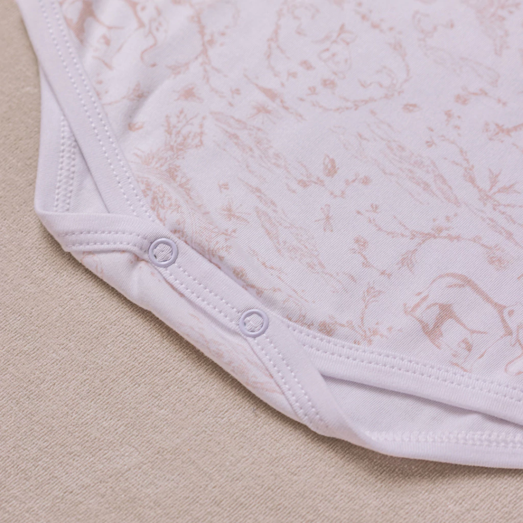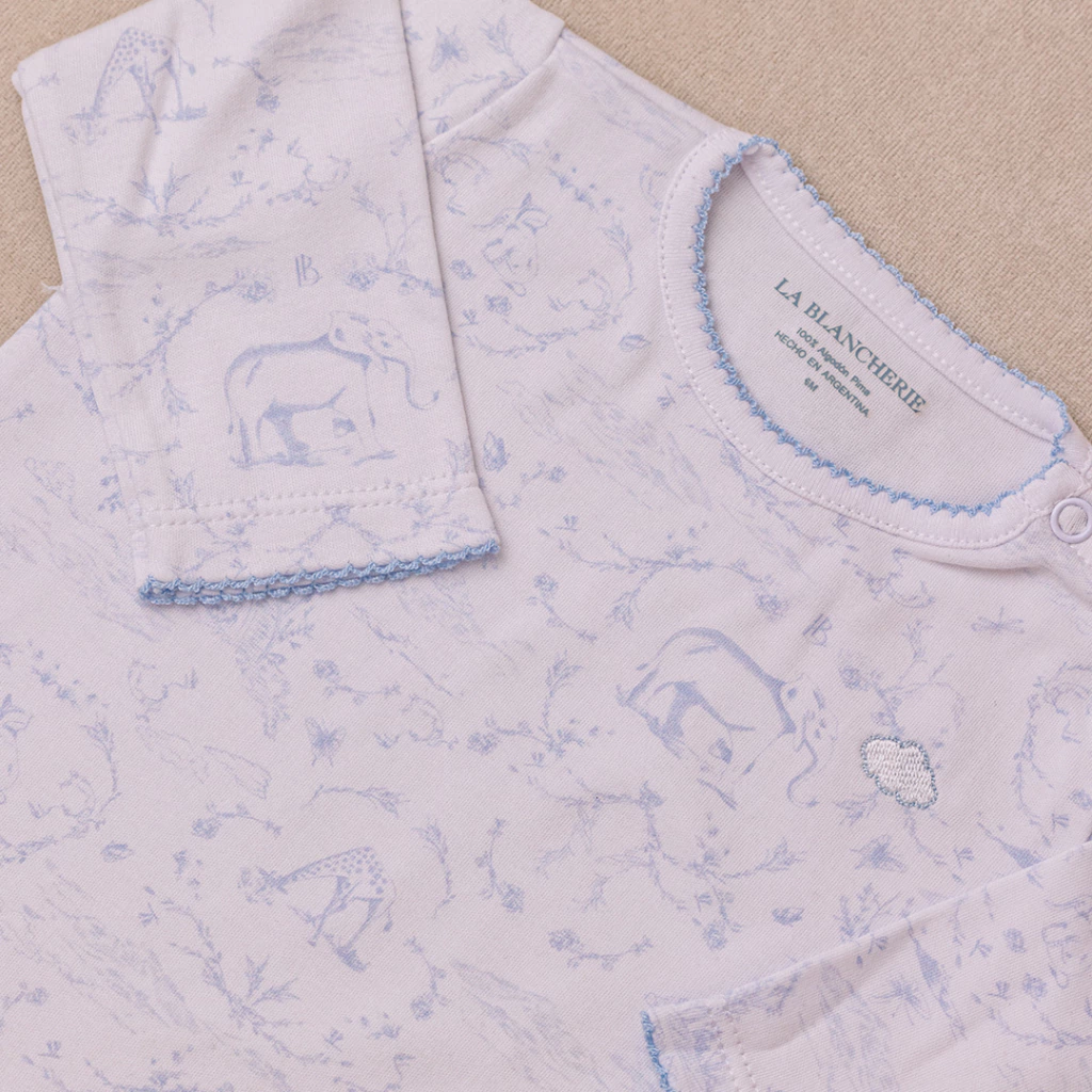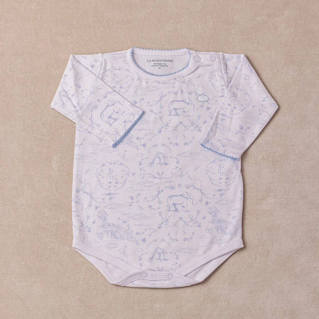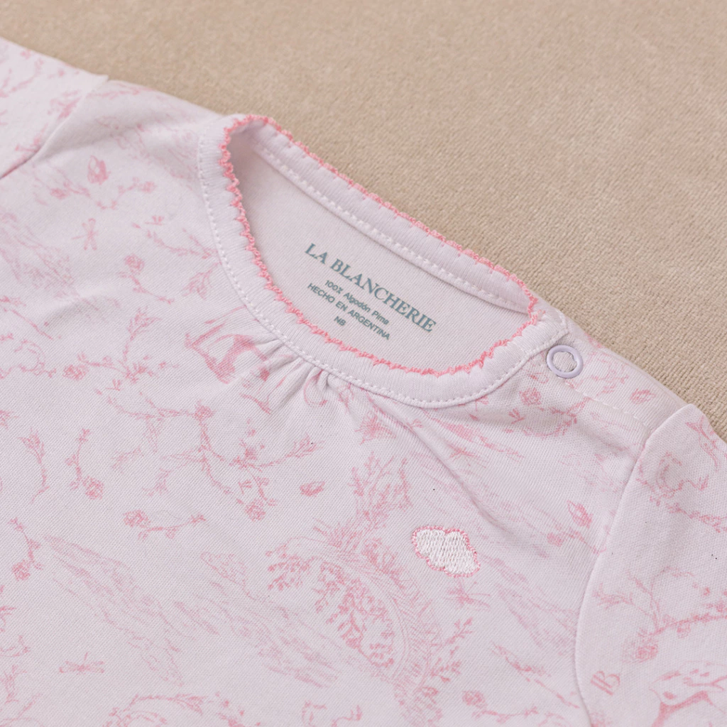 Body mangas largas, de interlock pima estampado. Cuello redondo con collareta y frunces en el centro, con detalle de picot y cartera con broches en hombros. Logo bordado en corazón. Apertura de entrepiernas con broches aro. Es un tejido dermatológicamente testeado, que atenúa y ayuda a prevenir los riesgos de alergia. Mayor suavidad y durabilidad, hipoalargénico. Pensado y hecho para la piel del recién nacido, con materiales confortables y suaves.
