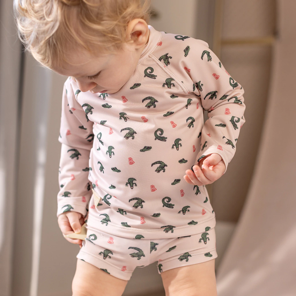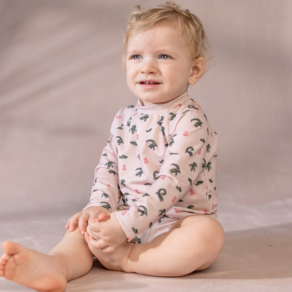 Remera estampada con protección UV, escote redondo, mangas largas. Espalda con cierre. Parche plastisol en el frente.