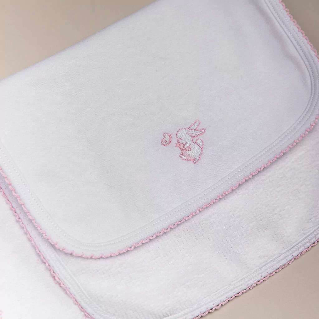 Set de 2 babitas. Una es estampada y la otra blanca lisa, con bordado referente a la estampa. Están hechas de interlock pima en el frente y en el dorso tienen microfibra. Ambas tienen detalle de picot en todo el contorno y la que es full estampa lleva logo bordado. Es un tejido dermatológicamente testeado, que atenúa y ayuda a prevenir los riesgos de alergia. Mayor suavidad y durabilidad, hipoalargénico. Pensado y hecho para la piel del recién nacido, con materiales confortables y suaves