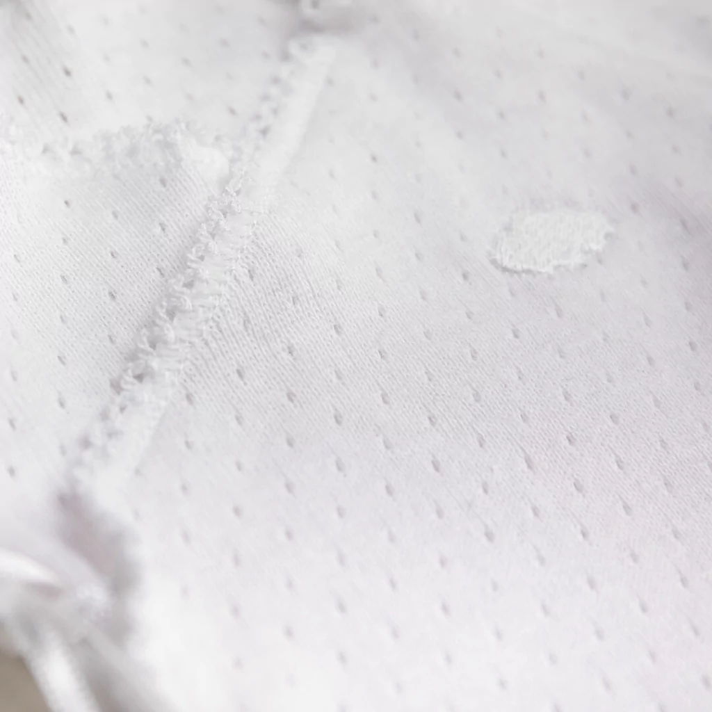 Set para bebés prematuros hasta 500grs., incluye body mangas largas, pantalón y gorrito, todo viene en bolsita. En algodón color blanco. Detalle de picot y logo bordado. Apertura de entrepiernas con velcro. Pensado y hecho para la piel del recién nacido, con materiales confortables y suaves